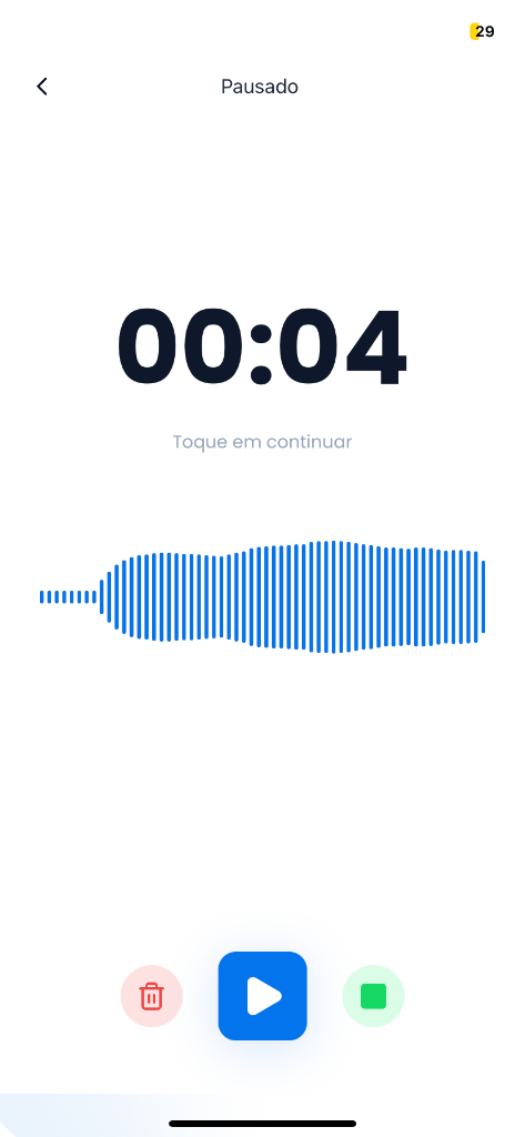 Inicie a gravação da consulta com um único toque. A interface simplificada permite que você foque totalmente no paciente.